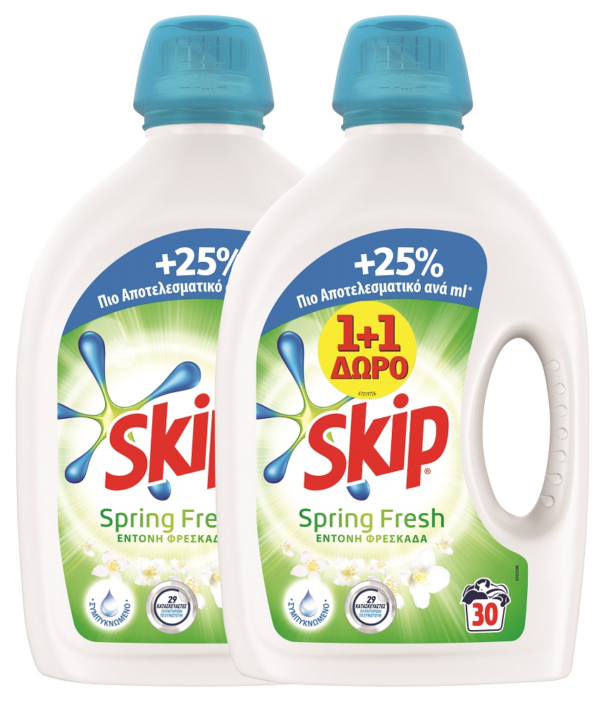 Skip Απορρυπαντικό Υγρό Spring Fresh 30Μεζ + Δώρο 30Μεζ